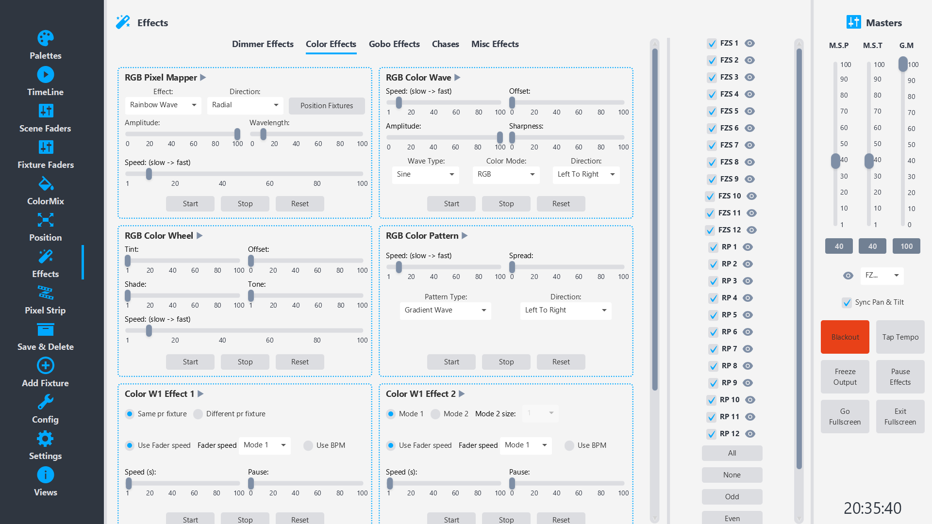 Smooth pan/tilt – Mouse, faders, or scroll wheel – coarse and fine control.