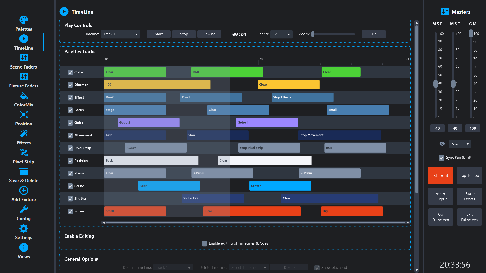 Simple DMX Controller for Windows is a user-friendly DMX software that simplifies managing DMX fixtures and creating light shows. With features like scene faders, fixture faders, timeline, palettes, effects, MIDI control, and real-time monitoring, SDC makes it easy to design and control lighting setups – whether you’re a beginner or an experienced user.