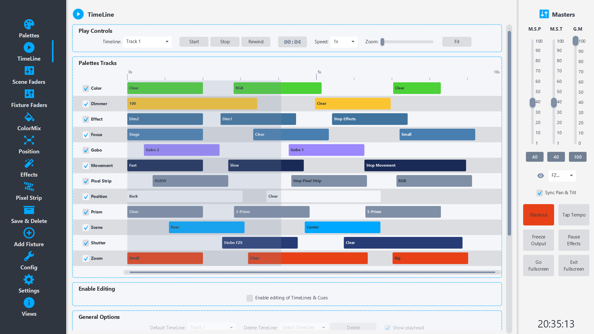 Visual Timeline – Sequence palettes across tracks with drag-and-drop editing for automated playback.